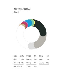 Gray records a significant increase of two percentage points, strengthening its position as a modern-elegant choice. White shows a slight decline, and black remains strong but with fewer solid finishes, as overall solid colors shrink to just 18 percent of the market. This development underscores a global trend that combines timeless elegance with expressive diversity, with green leading the shift toward a more individual and sustainable color palette.