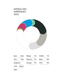 In the American automotive color world, 2025 presents a mixed picture: gray is slightly below its 2024 level but still well above 2023. Silver is gaining importance again, while white continues to decline. The share of colored car paints has risen by almost two percentage points, showing a stronger preference for expressive colors. While red and blue have historically led in the Americas, shades like green, beige, brown, and violet are now gaining momentum, highlighting a shift toward nature-inspired and diverse aesthetics.