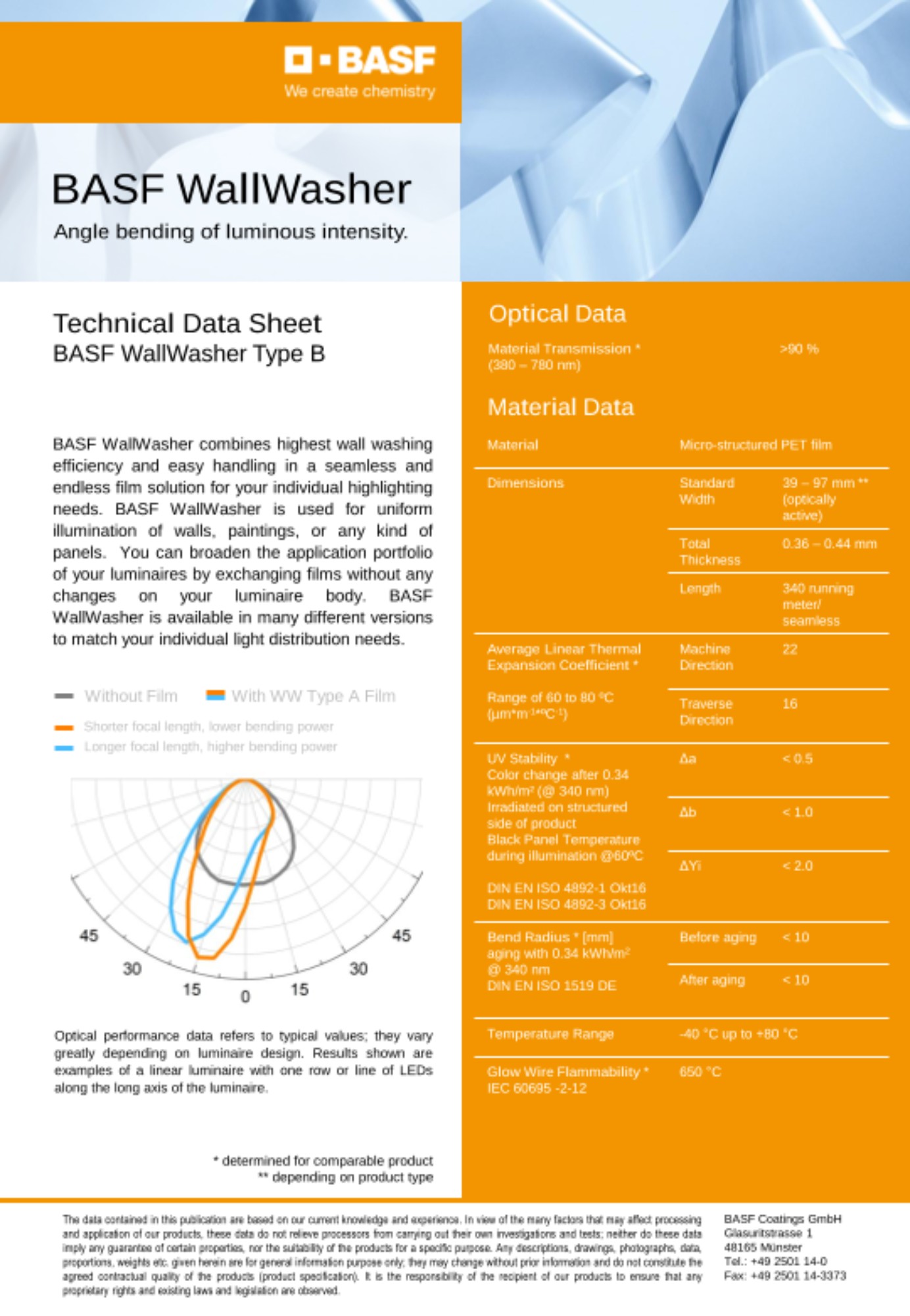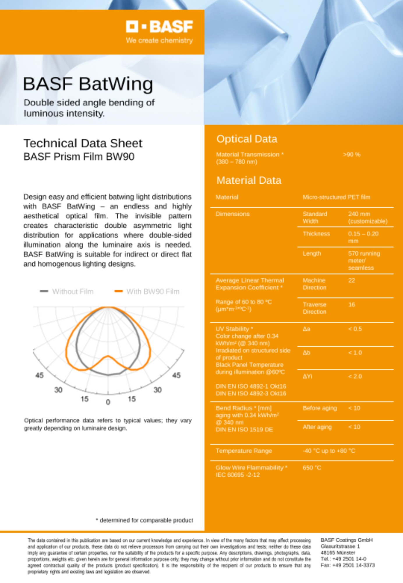Are you a producer of luminaires, a light designer or architect? We would like to work with you. BASF’s team for functional films and foils is engineering a variety of solutions for optical effects – from symmetrical light shapes for glare control to asymmetric guiding.