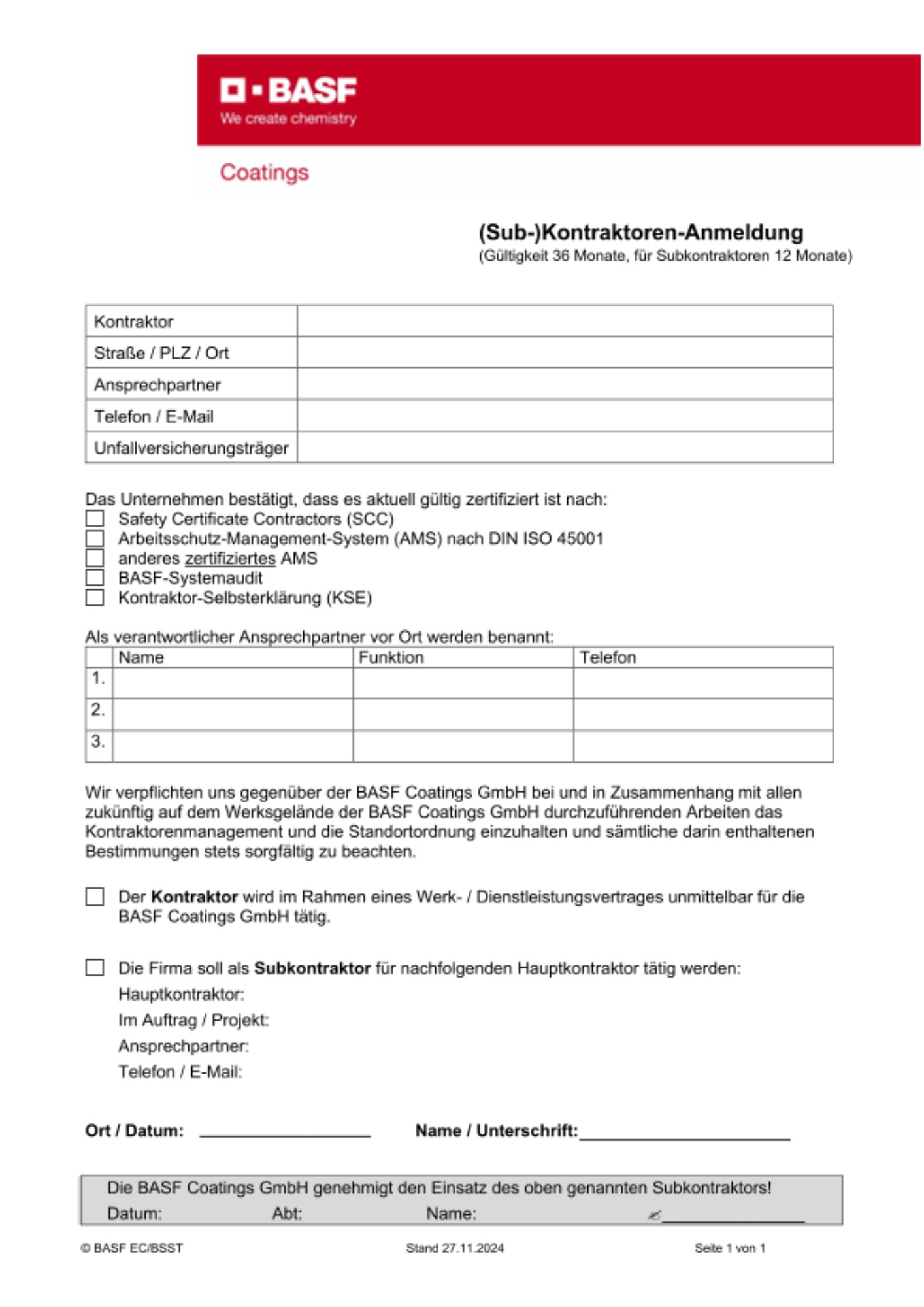 Es ist unbedingt nur dieses Formular zu nutzen.