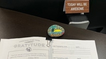 Second, and a bit less formal, I often encourage colleagues to practice self-care and mindfulness, using tools such as gratitude and affirmations. Whether it’s through the candy dish I keep at my desk that allows people a sweet treat and break away from their work, the gratitude journal I have set out for everyone to write in, or the “Emergency Affirmation” button that offers a friendly reminder when needed.