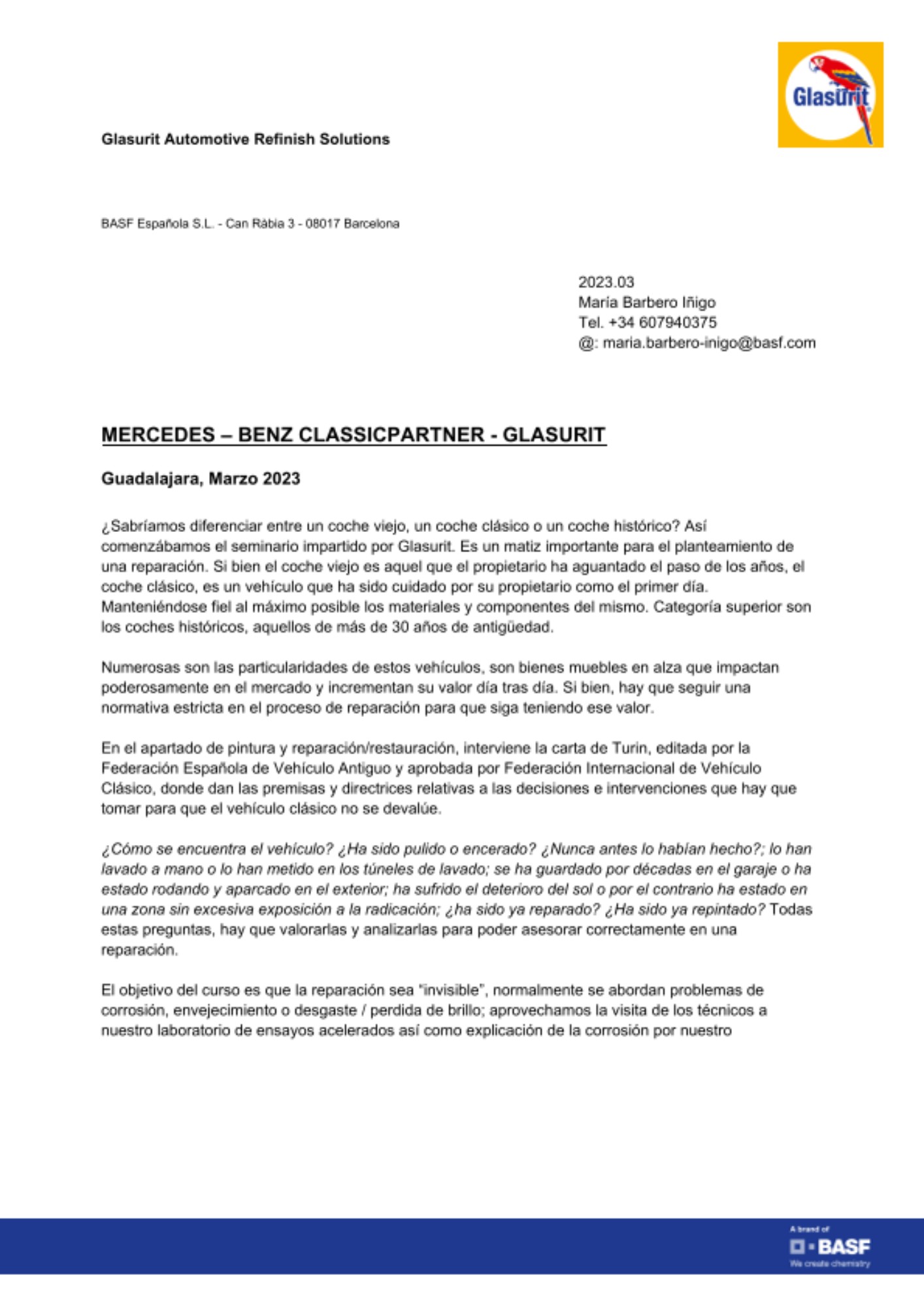BASF: seminario impartido por Glasurit para Mercedes-Benz Classic Partner